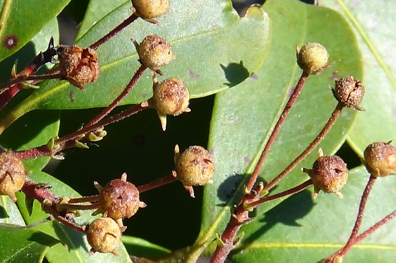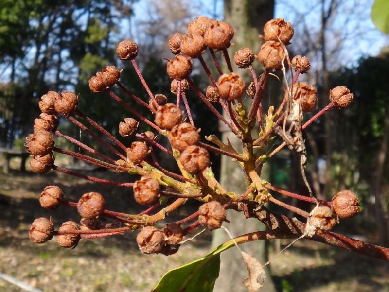 果実は丸い朔果で、5つに裂開すると、小さな種子が多数出る。