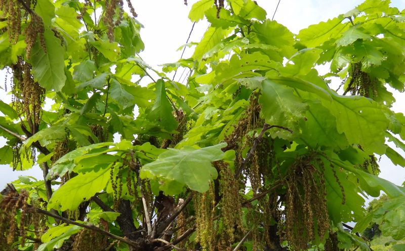 長さ10〜15センチで黄緑色〜淡褐色の雄花序が数本垂れ下がり、