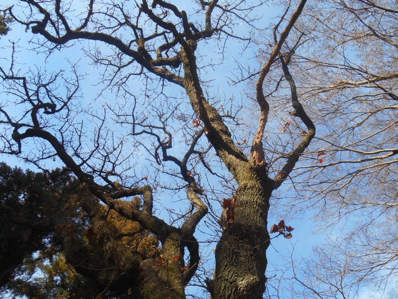 樹皮は灰褐色〜黒褐色で、不規則に深い縦の割れ目が入る。