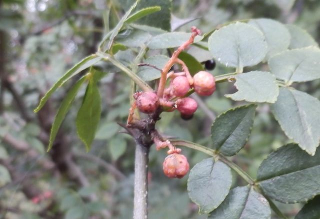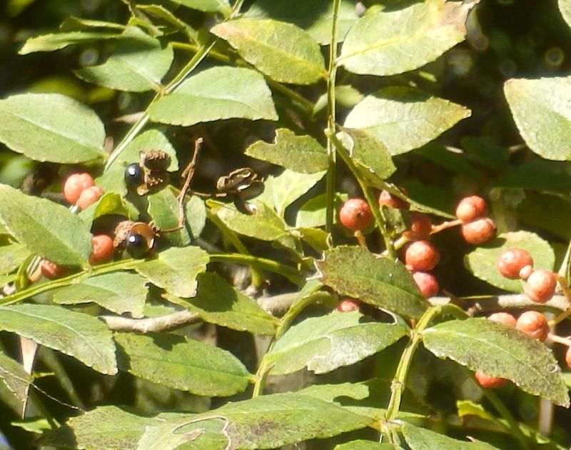 イヌザンショウ :落葉低木、小葉広披針形、葉軸に狭翼、棘互生、3分果、香り弱。