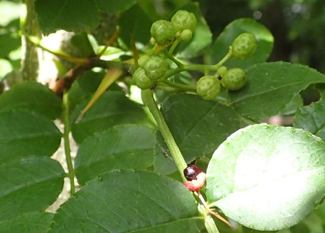 葉腋に黄緑色の小さい花を数個つける。