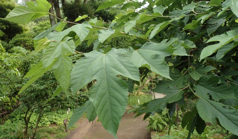マグワ : 雌雄異株、花柱が短い、雄花序4〜7センチ、楕円形の総状集合果が黒くなる、高木