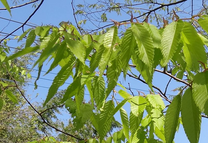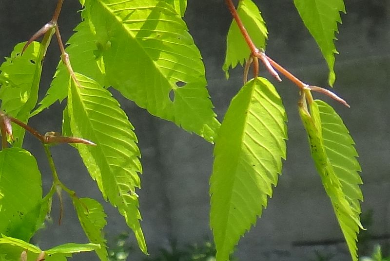 葉は薄くて鋸歯があり、側脈が縁まで平行にのびる。