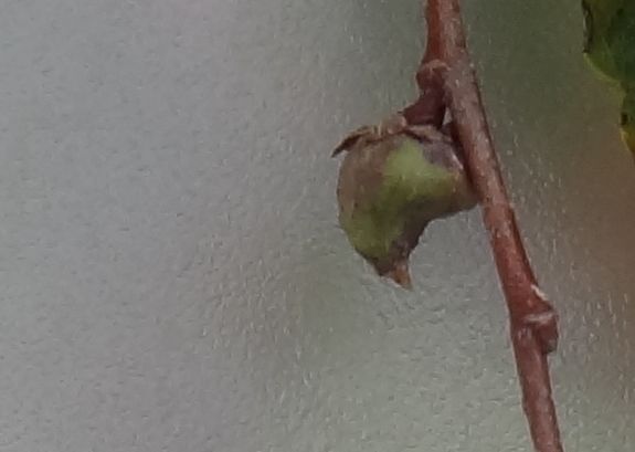 雄花は新枝の下部に数個、雌花はその上部の葉腋に1個つく。