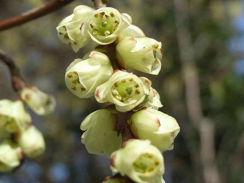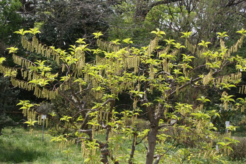 葉の出る前に前年枝の葉腋から穂状花序が並んで垂れ下がり、