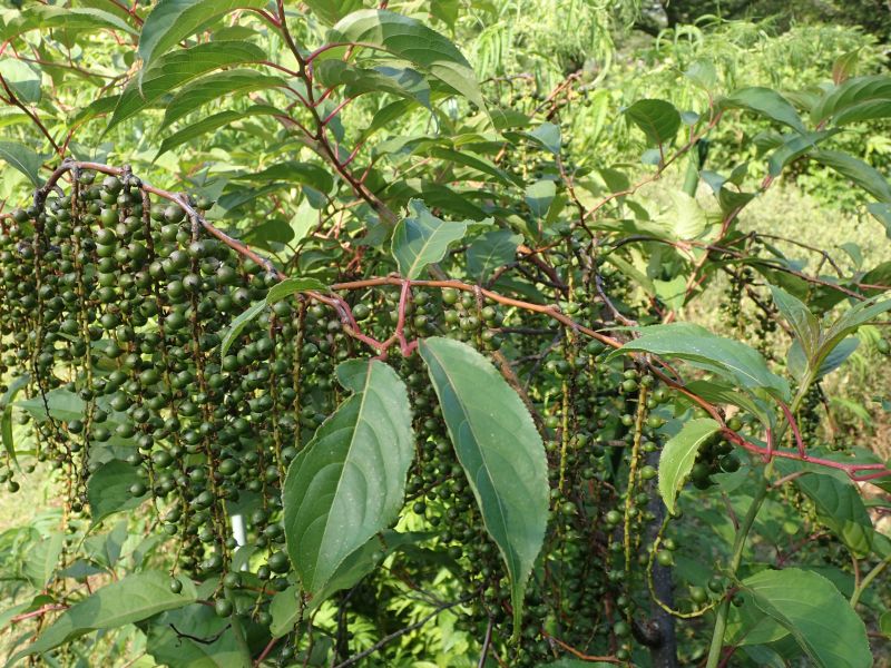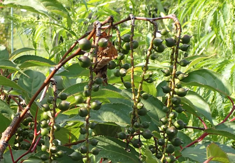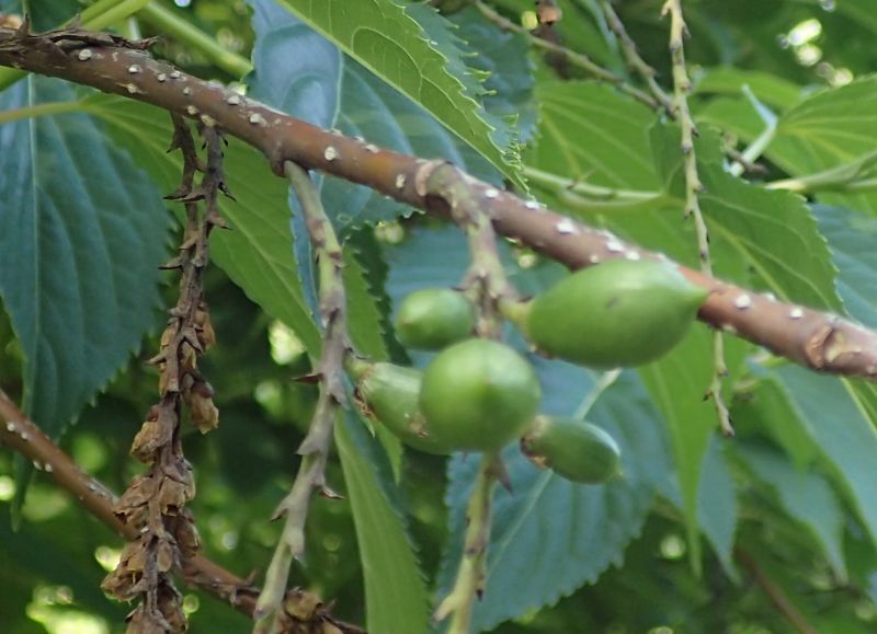 雌木は花後に緑色のややかたい楕円状の液果を総状につけ、