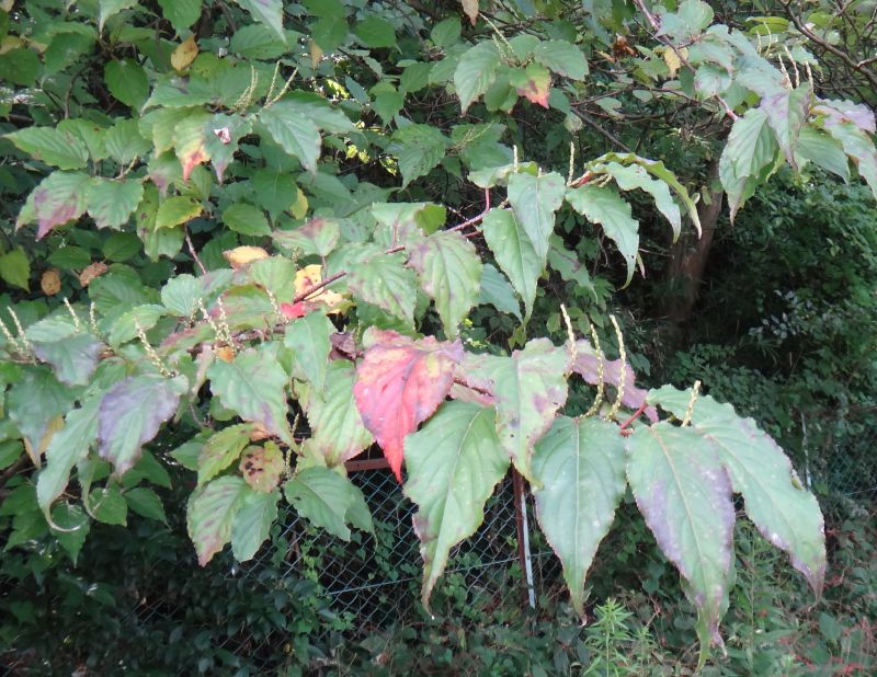 ハチジョウキブシの花芽が垂れ下がってきた。(2021/10/24)
