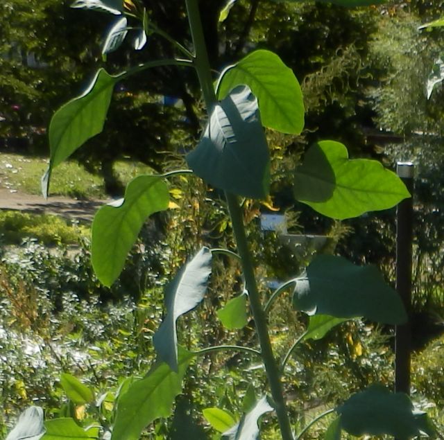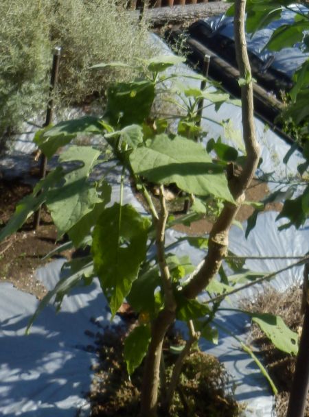 幼木では、葉も幹も粉をかぶった緑色。(2015/7/2)
