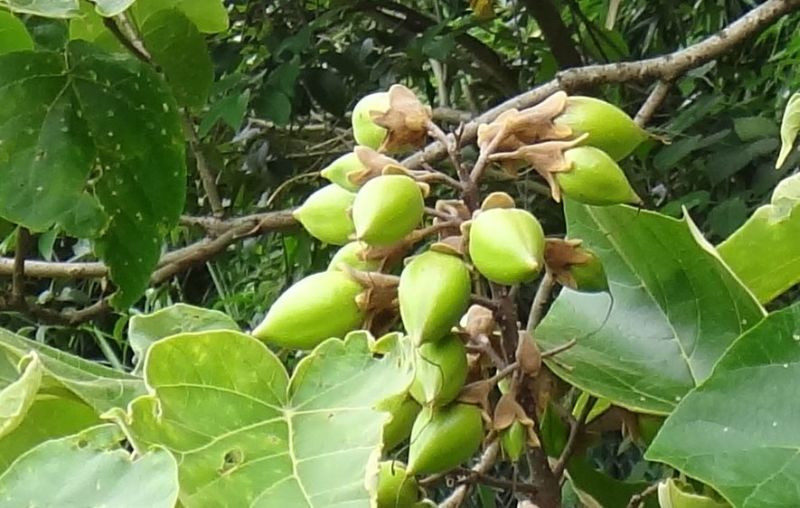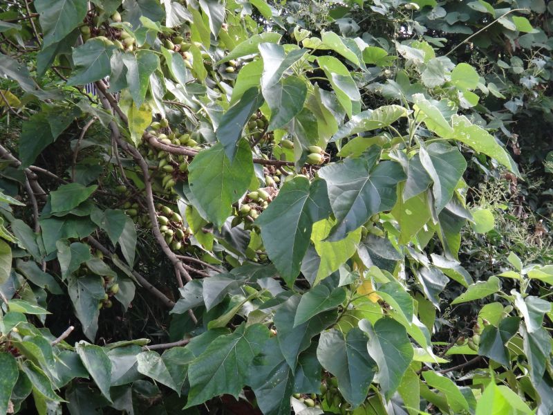 葉は大きな広卵形で、3〜5浅裂する。(2015/8/8)