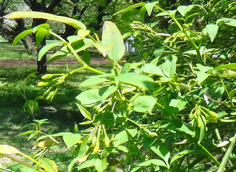 ソケイ :半つる性低木、羽状複葉、花5裂、白、芳香強。
