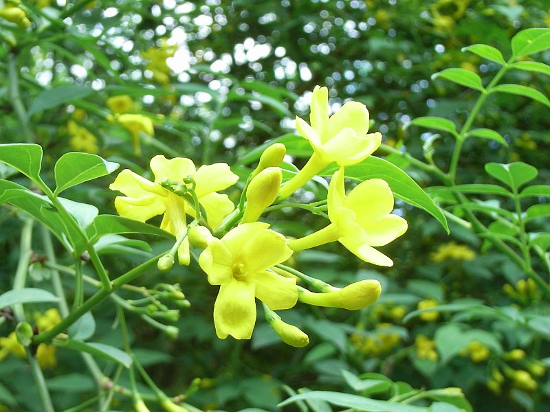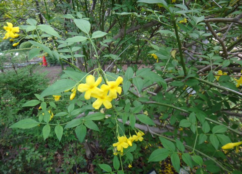 キソケイ:低木、羽状複葉、花5裂、黄、香微。