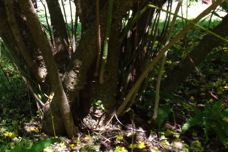 脇芽が出て株立ちする。幹は灰褐色で皮目がある。(2016/4/29)