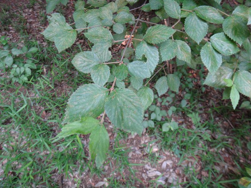 コバノガマズミ :落葉、葉柄6ミリ、針状托葉、鋭鋸歯。