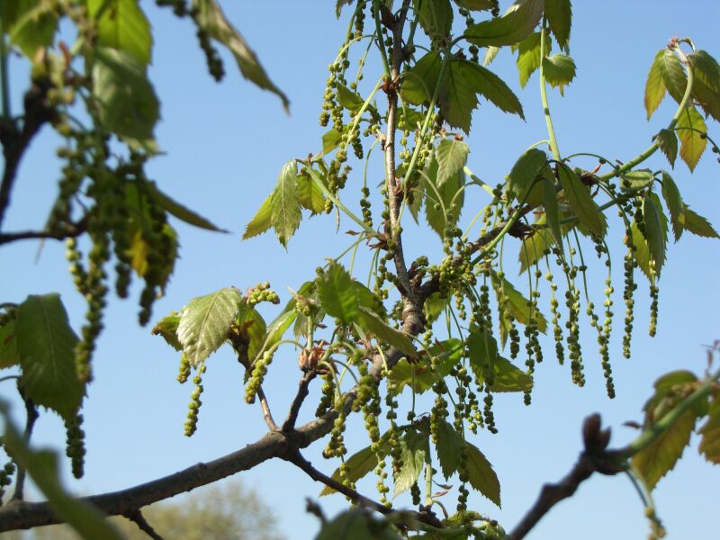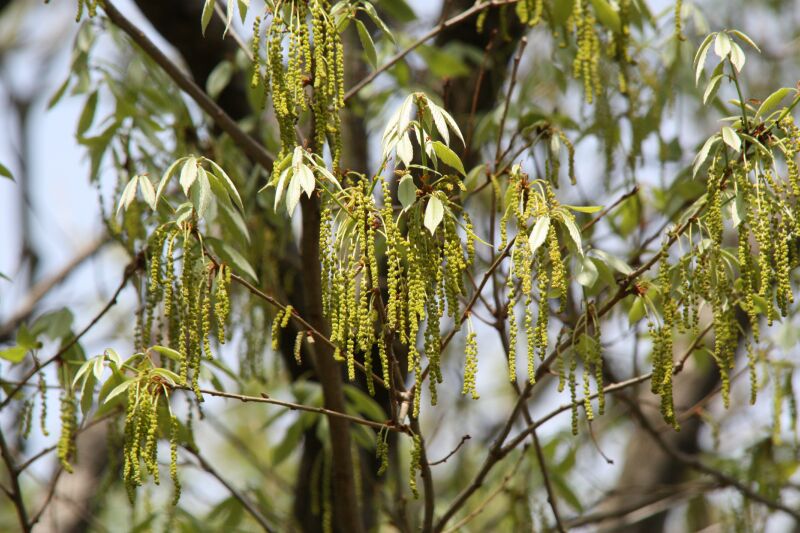 雄花序は黄緑色で新枝の脇から尾状に垂れ下がり、