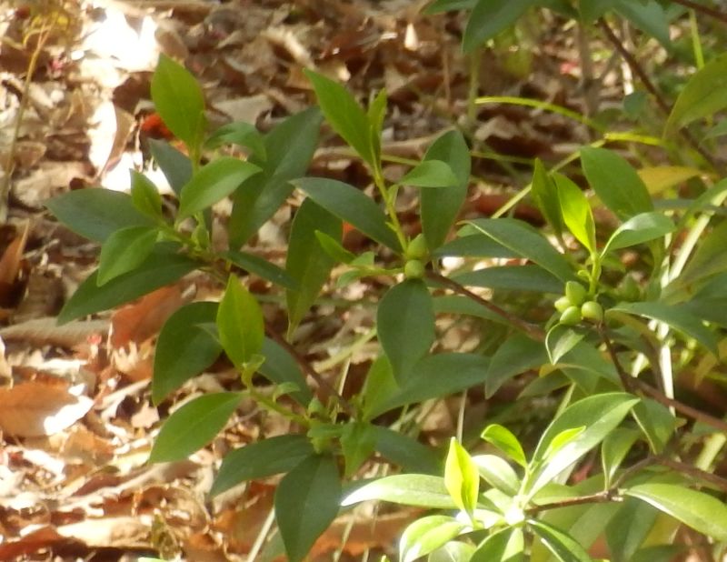 葉はとがった長楕円形で、全縁で光沢がある。(2016/4/15)