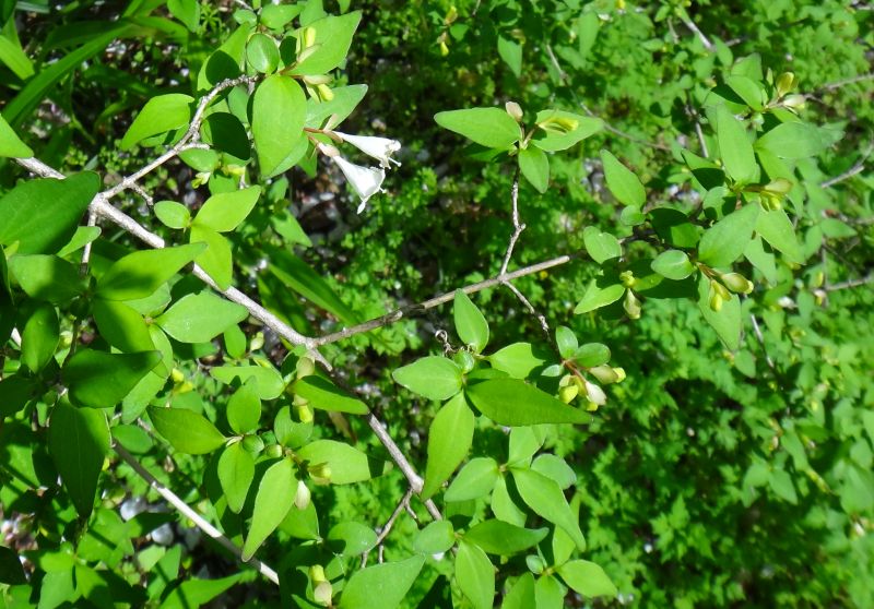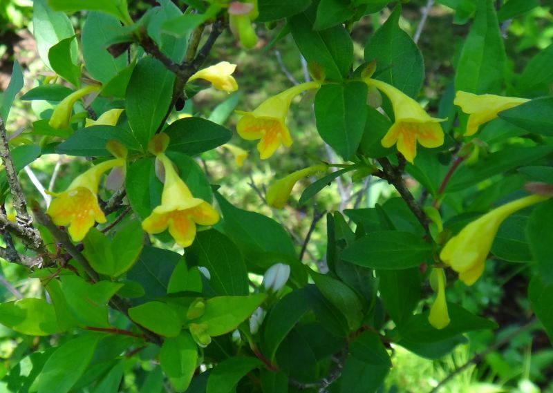 キバナツクバネウツギは、花や葉がコツクバネウツギより少し大きい。