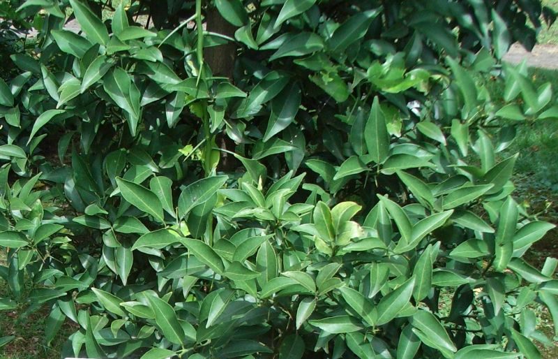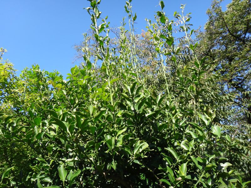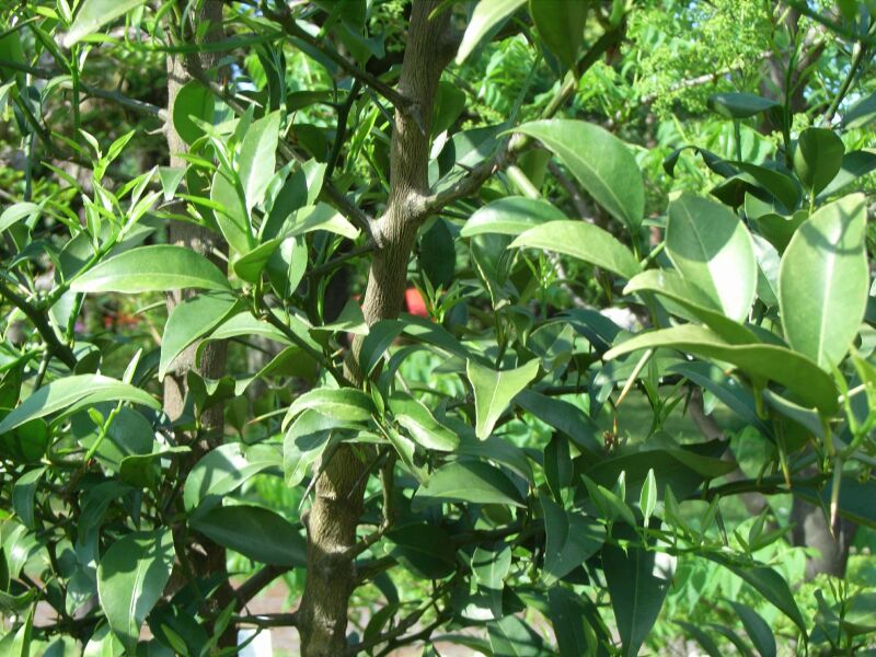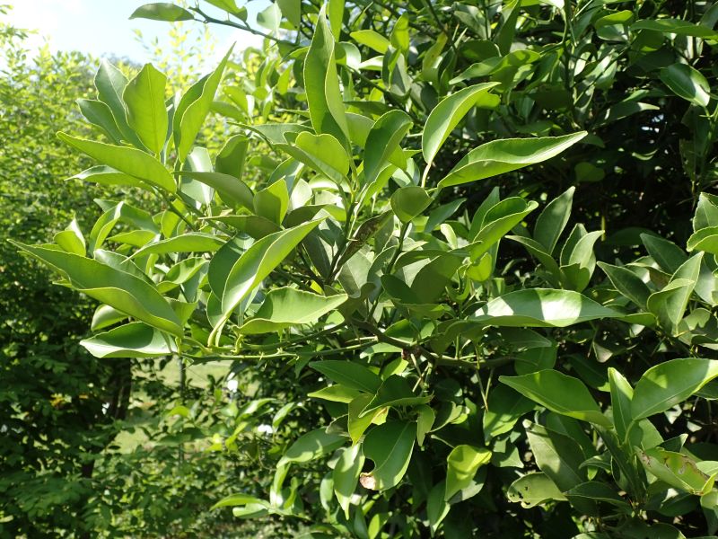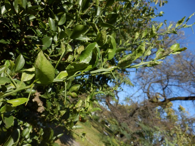 葉腋に大きな棘がある。葉は先が細くなった卵状長楕円形。