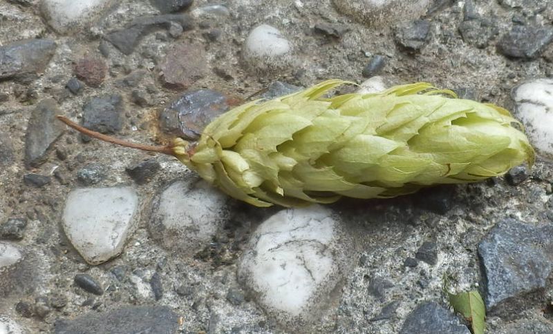 果苞が密に重なり、先が閉じぎみの果穂ができる。Photo by H. O. (2010/5/23)