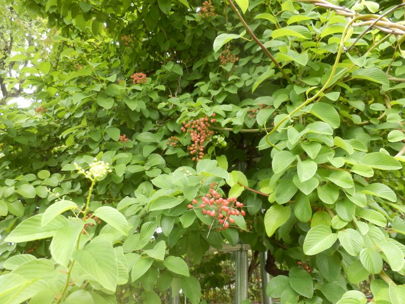 緑から赤を経て、翌年の夏に黒色に熟す。