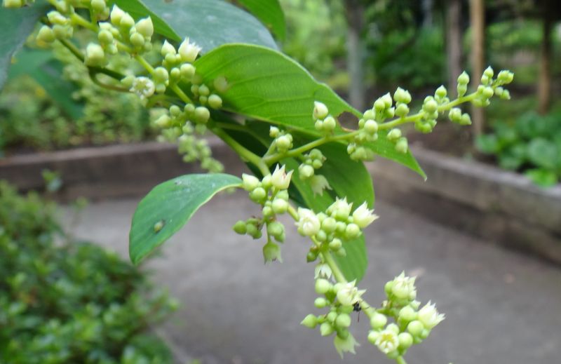 枝先や葉腋の総状花序に黄緑色の小さい花を多数つける。