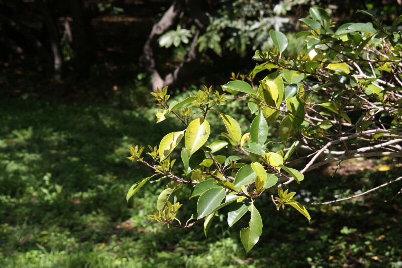 葉は全縁で革質の楕円形。