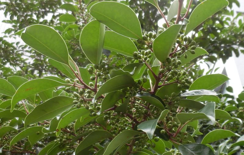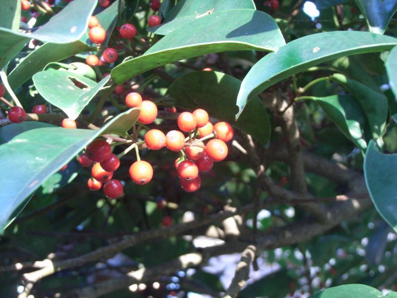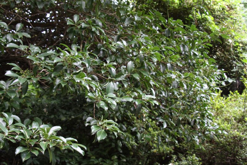 モチノキ属、常緑、広葉樹、高木。