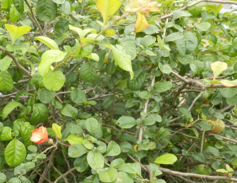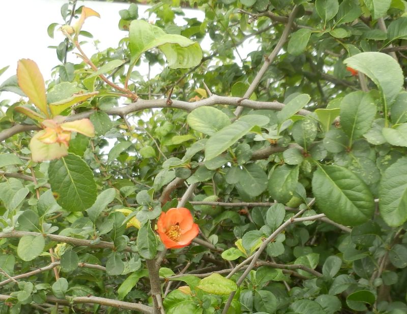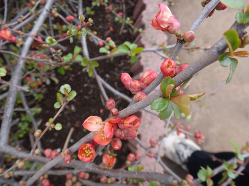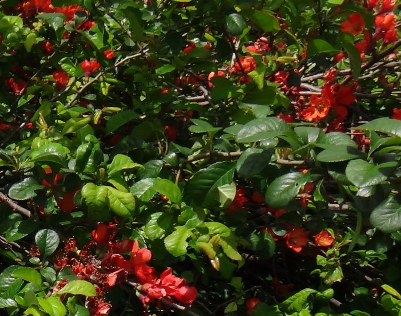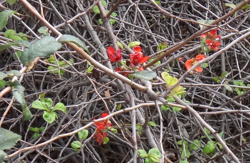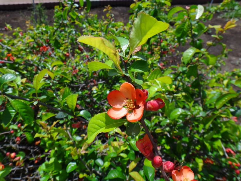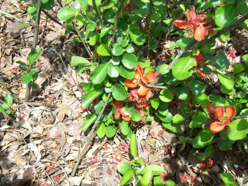 ボケ :高さ2メートル、花は赤または白、果実は5〜10センチ。