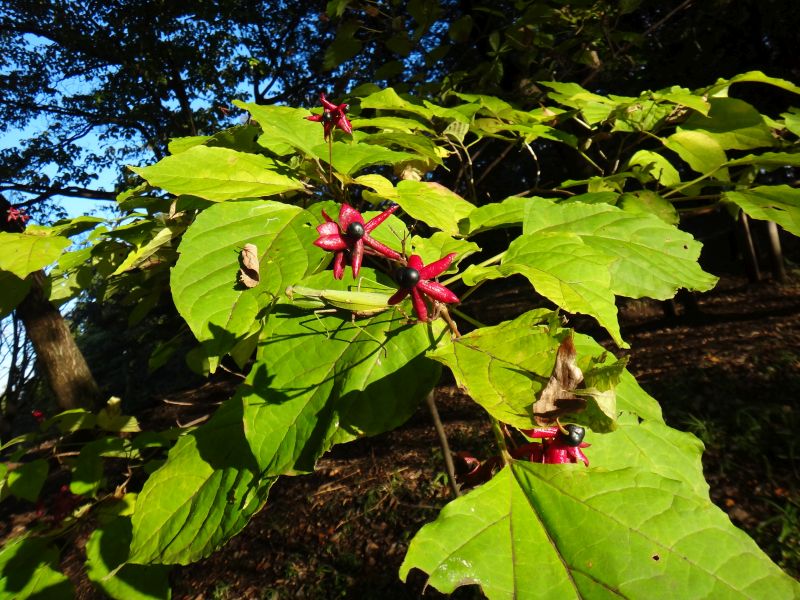 5裂した赤い萼の上に青く熟した実がのっている。(2008/10/26)