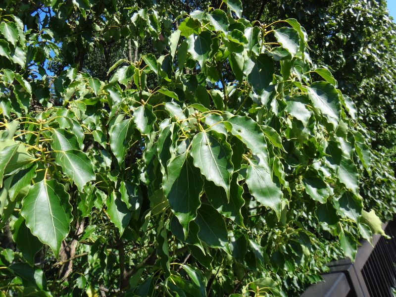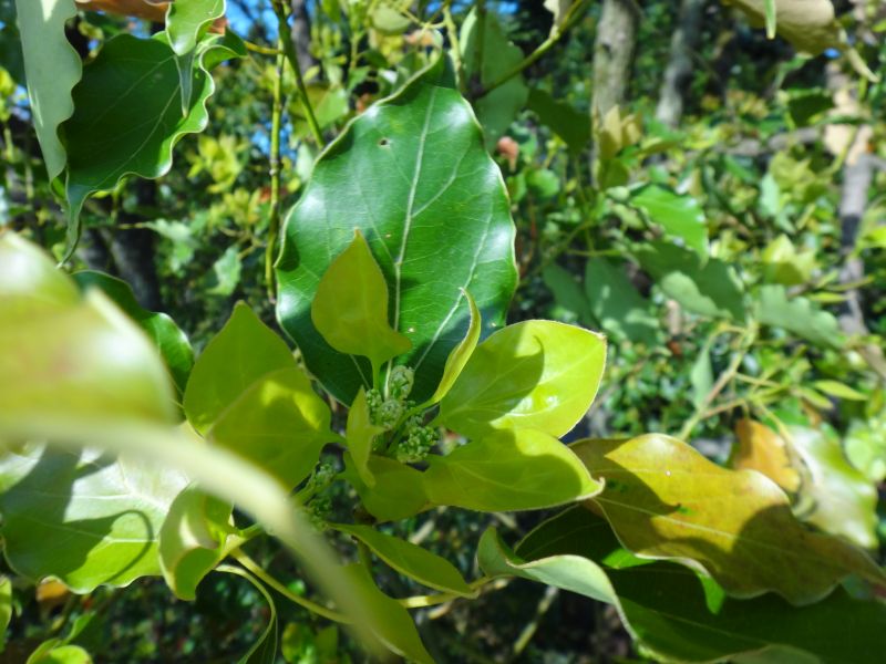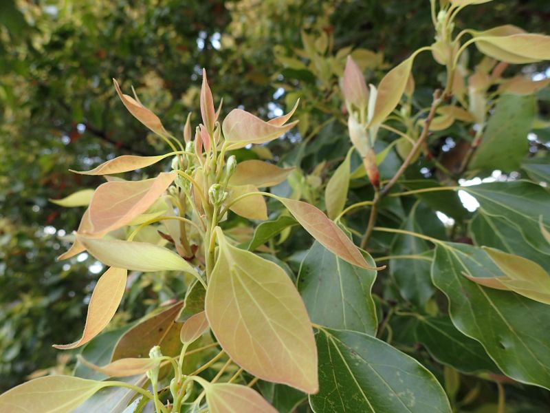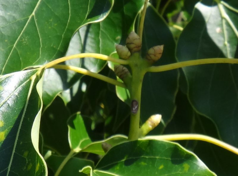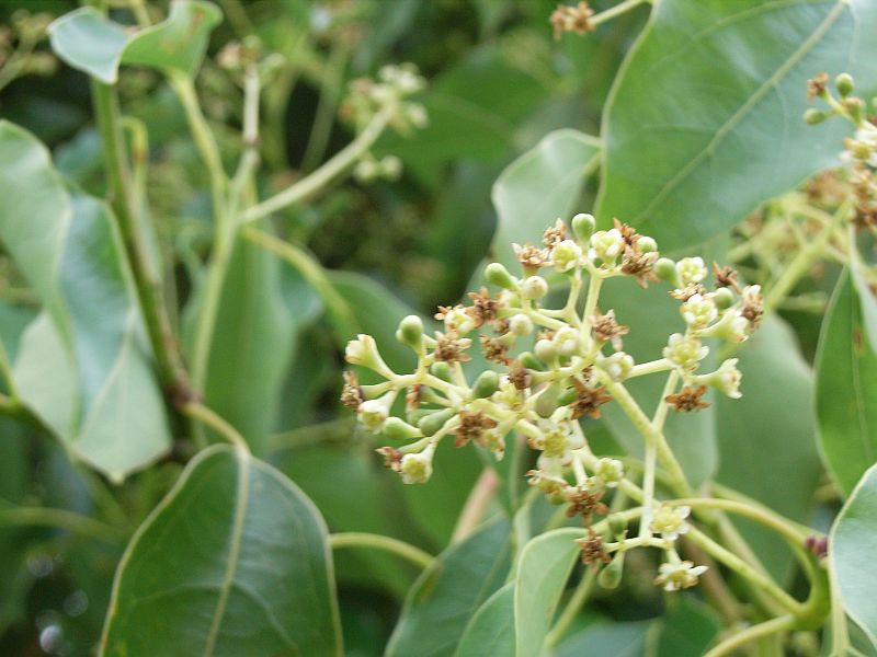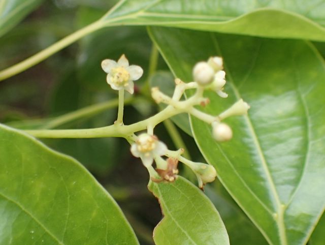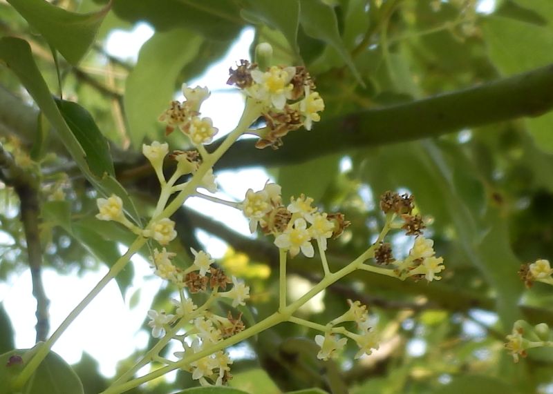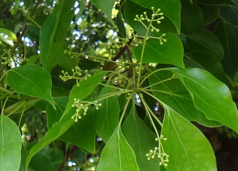 初夏に葉腋から円錐花序を出し、小さい白い花をつけるが、後に黄色になる。