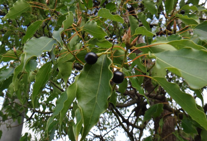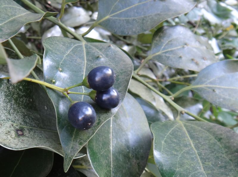 黒紫色に熟す。葉の縁はやや波打つ。(2015/11/21)