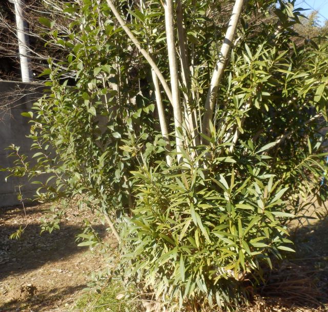 株立ち状になり、若枝は緑色であるが古枝は暗褐色になる。