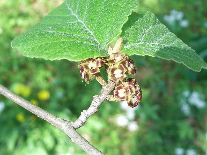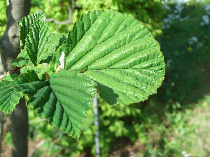 葉は長さ7〜12センチの菱形状円形で、波状のあらい鋸歯があり、
