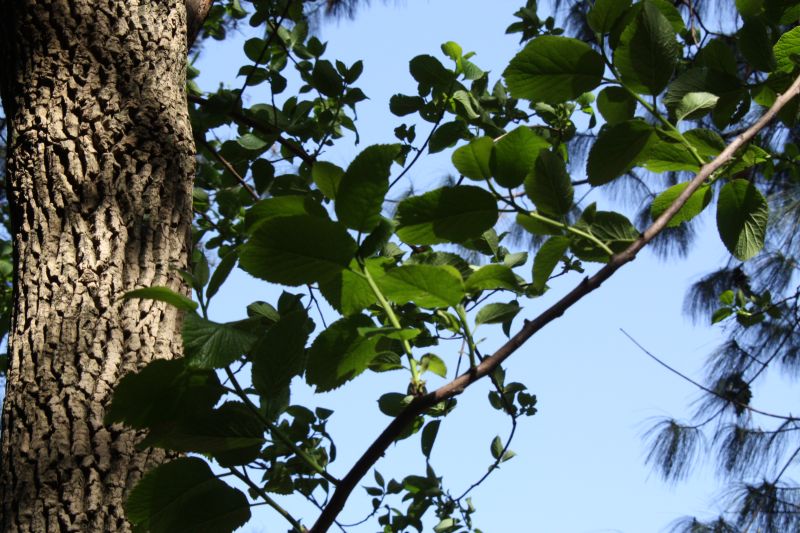 樹皮は灰白色でコルク層があり、縦の割れ目が入る。