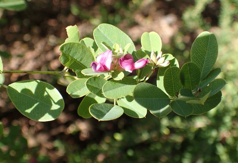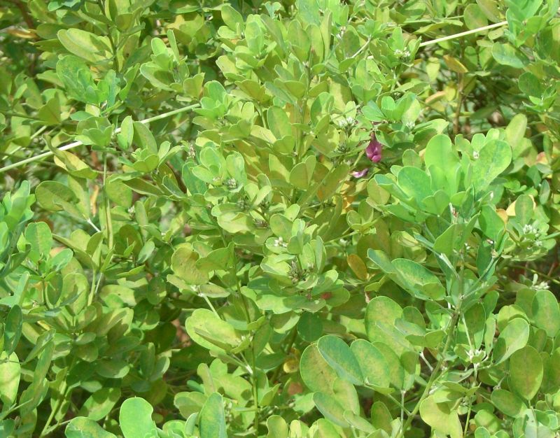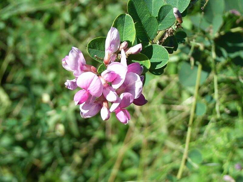 マルバハギ :小葉は丸くて先がへこみ、花序は葉より短く、枝があまり垂れない。