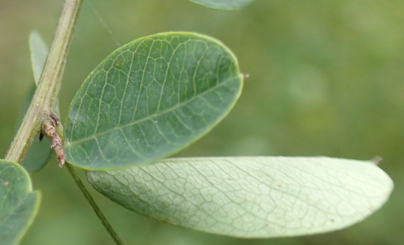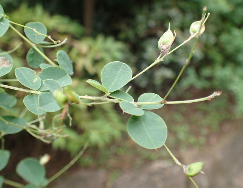葉は3出複葉で互生し、小葉は長さ2〜4センチの楕円形で、