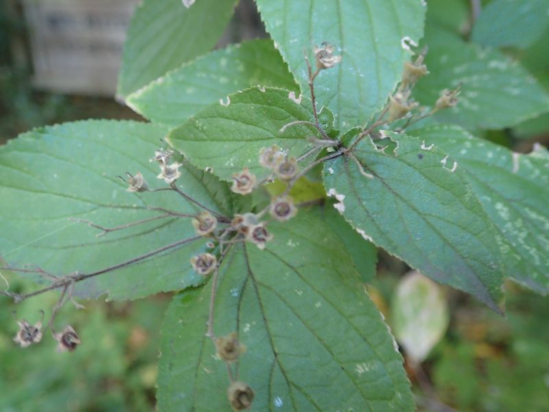 果実は直径約3ミリの細椀形の朔果で、花柱が残り、