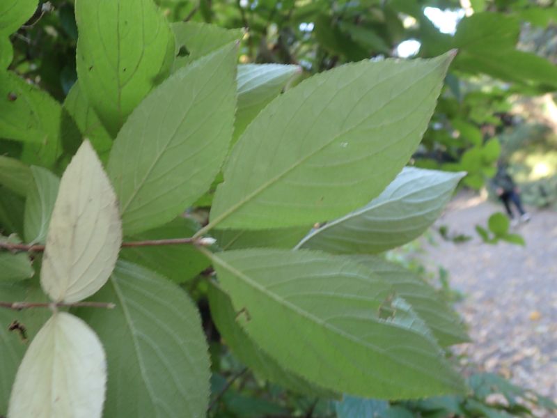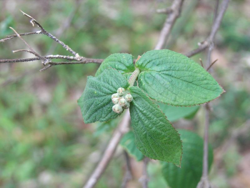 葉には浅い鋸歯があり、葉脈は裏面に突出し、