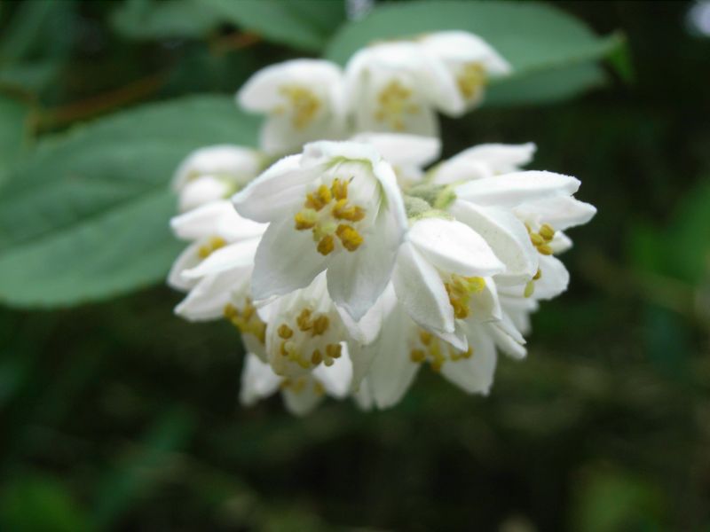 直径約10ミリの5弁の白い花を上向きに平開させる。