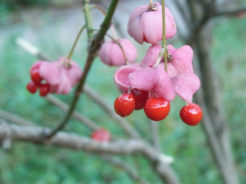 果実はかどの丸い四角形の朔果で、熟すと紅色になり、