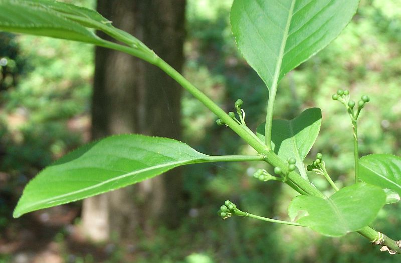 葉は有柄で、長さ6〜15センチの長楕円形で鋸歯があり、