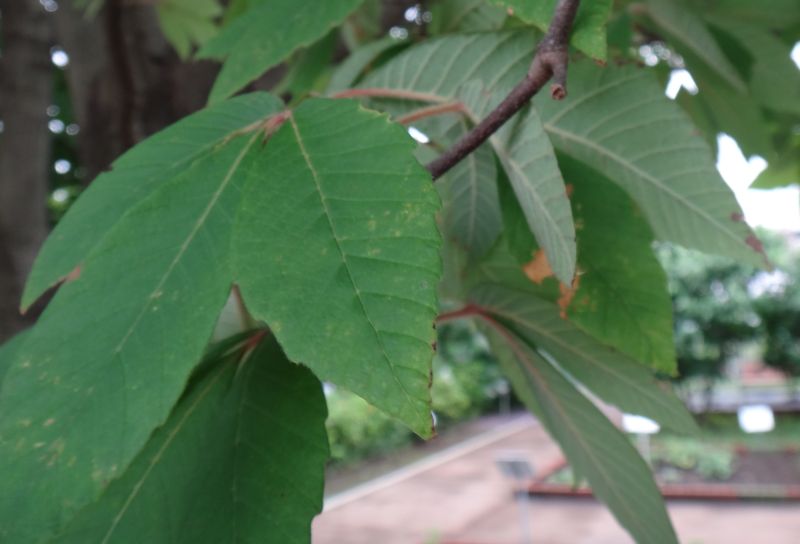 波状の鋸歯がある。葉裏には灰褐色の粗毛がある。(2015/7/2)