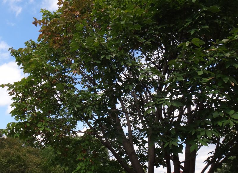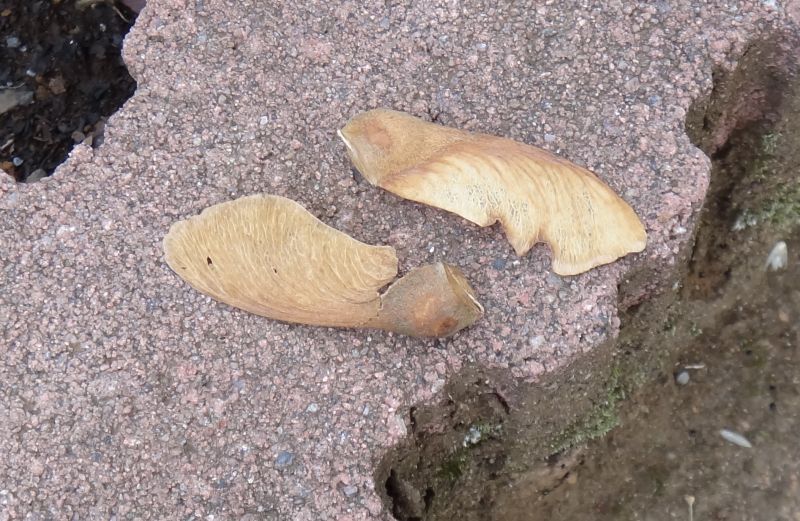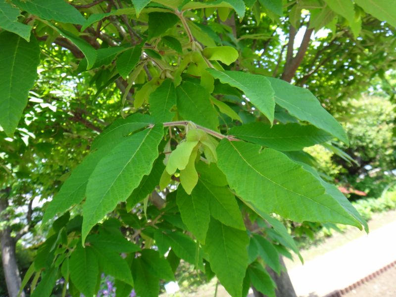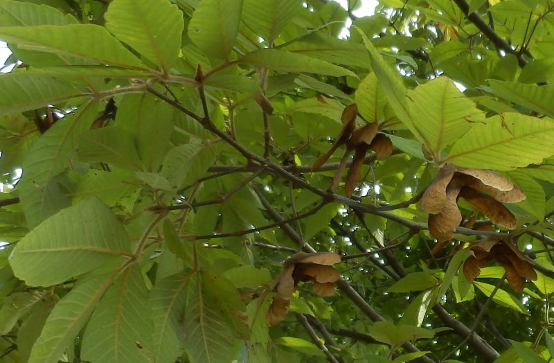 翼果の分果は長さ4〜5センチで、ふたつが八の字状に開き、