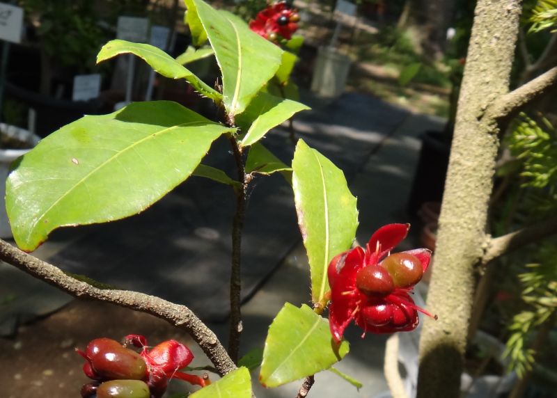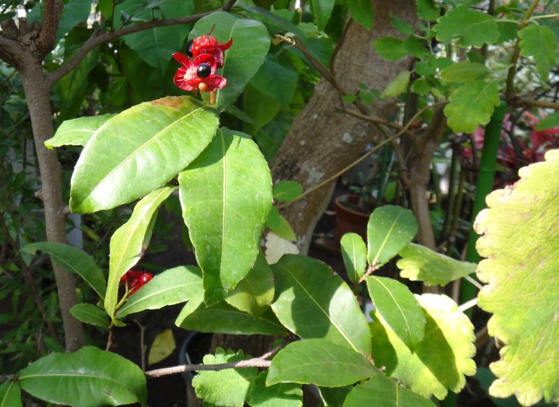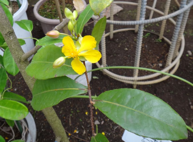 オクナ属、常緑、低木。