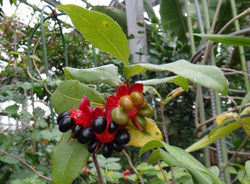 丸くて光沢のある核果を数個つける。
