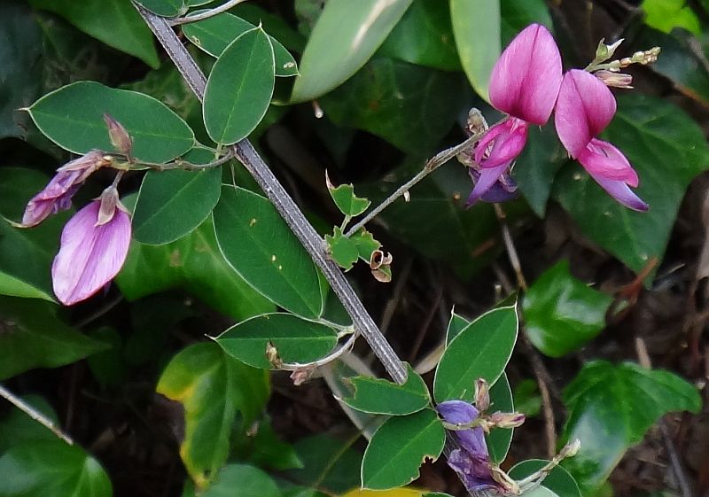 赤紫色の蝶形花が咲く。