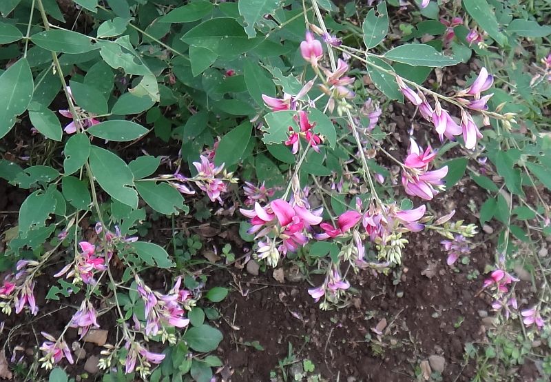 長さ約1.5センチの赤紫色の蝶形花を多数つける。