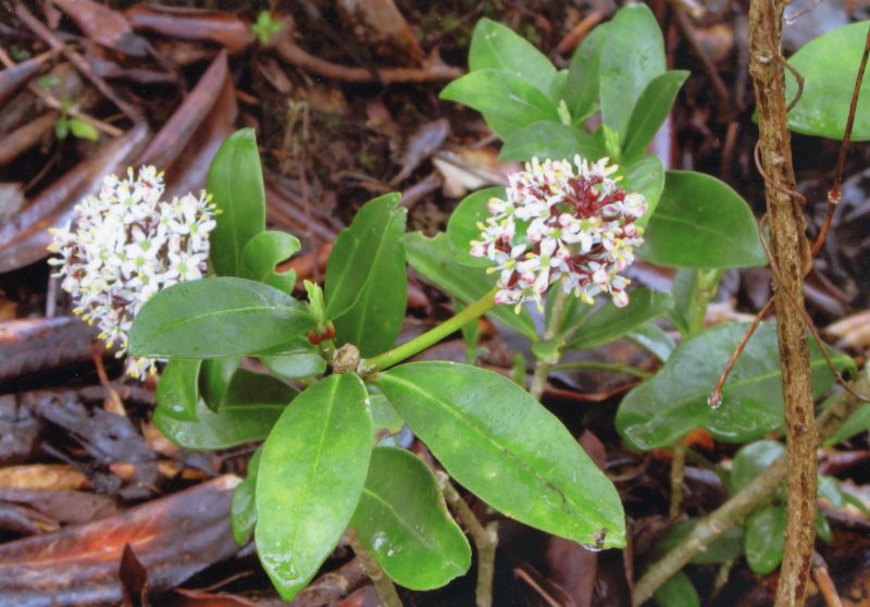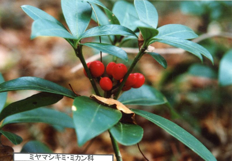 双子葉、合弁花、 ミカン科、 ミヤマシキミ属、常緑、広葉樹、低木。 用語説明