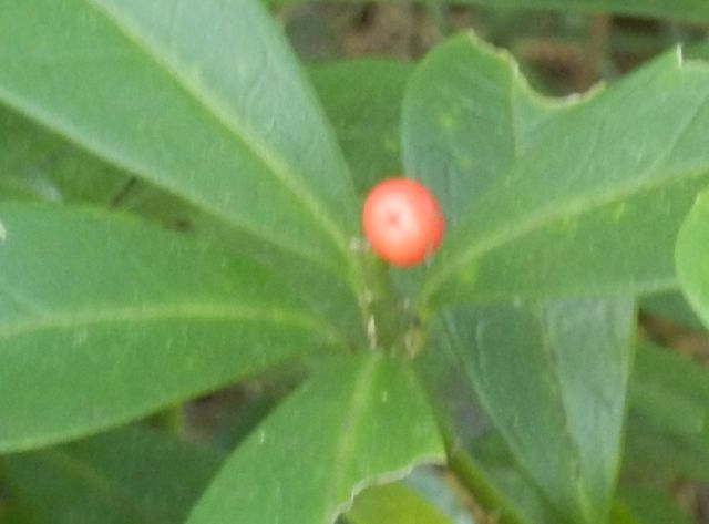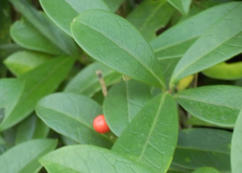 ウチダシミヤマシキミ。果実は丸くて赤い。(2017/10/26)