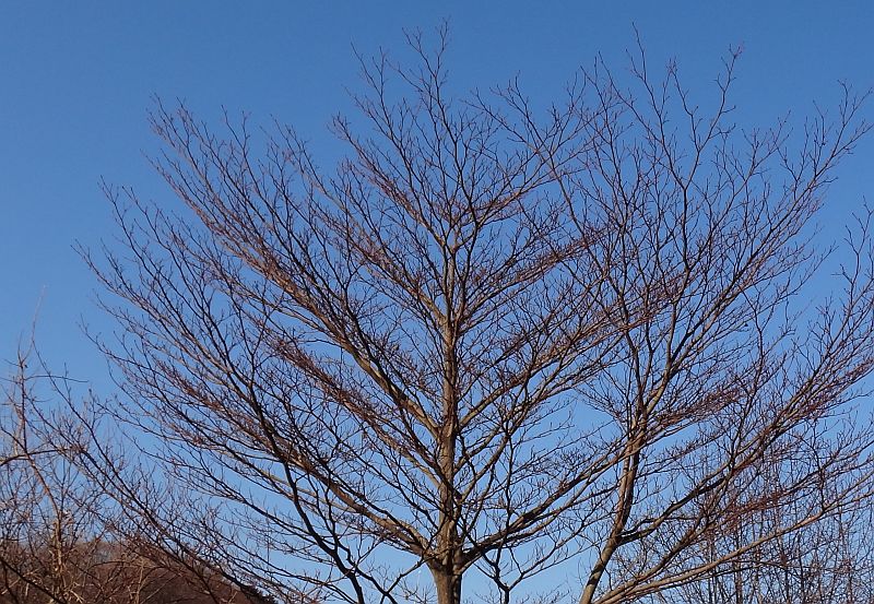冬枯れの枝は対称形に斜上している。(2013/1/12)