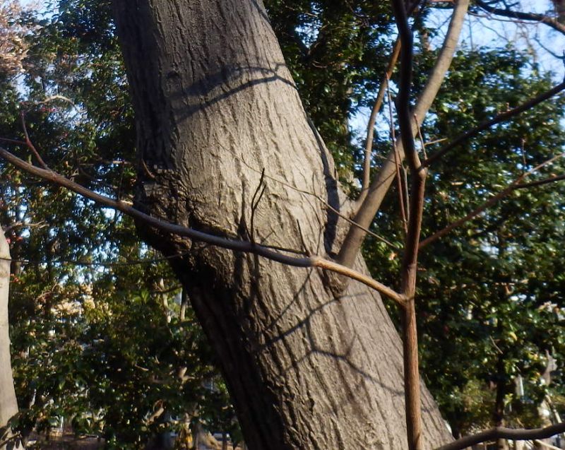 幹は灰褐色で、縦のひびがはいる。